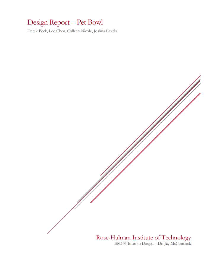 During my freshmen year, I took a class called Introduction to Design with Dr. McCormack. One of the projects that I worked on in the course was the Pet Bowl Design Report, where students selected a project in which the professor intended to have students use the knowledge obtained through previous engineering classes and take it to another step in a three week long project with a final report deliverable. My project team was compromised of me, Dereck Beck, Colleen Nicole, and Joshua Eckels. We designed a pet water bowl that would automatically notify the pet owner when the water bowl needed to be refilled. The most innovative feature of the design was the use of the Hall Effect Sensor to light up an LED at the front of the pet bowl once the water level neared empty. One challenge that I faced during this project was the implementation of the Hall Effect Sensor on the prototype. Because the Hall Effect Sensor requires a magnet to function, we had to play around with many different magnets and flotation devices before finally getting the prototype to consistently work. As seen on page 11, we were able to address the strengths and weaknesses of the pet bowl design without getting lost in specific technical work. It’s extremely important for mechanical engineers to use technical jargon appropriately, and through the write-up of the Pet Bowl Report, I was able to showcase my ability to write a technical document for company executives.